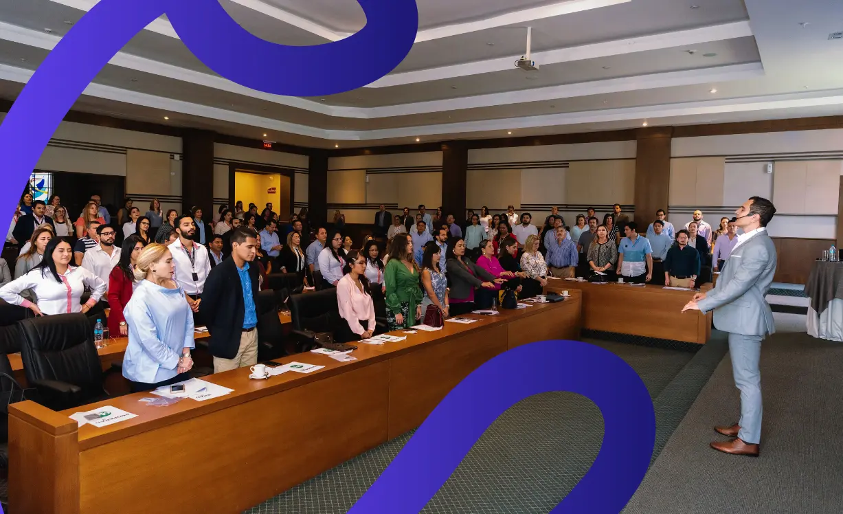 Además, para elevar la energía y fomentar una atmósfera positiva, Alejandro incorpora ejercicios rompehielos diseñados para aumentar la interacción y crear un ambiente participativo desde el inicio del evento.